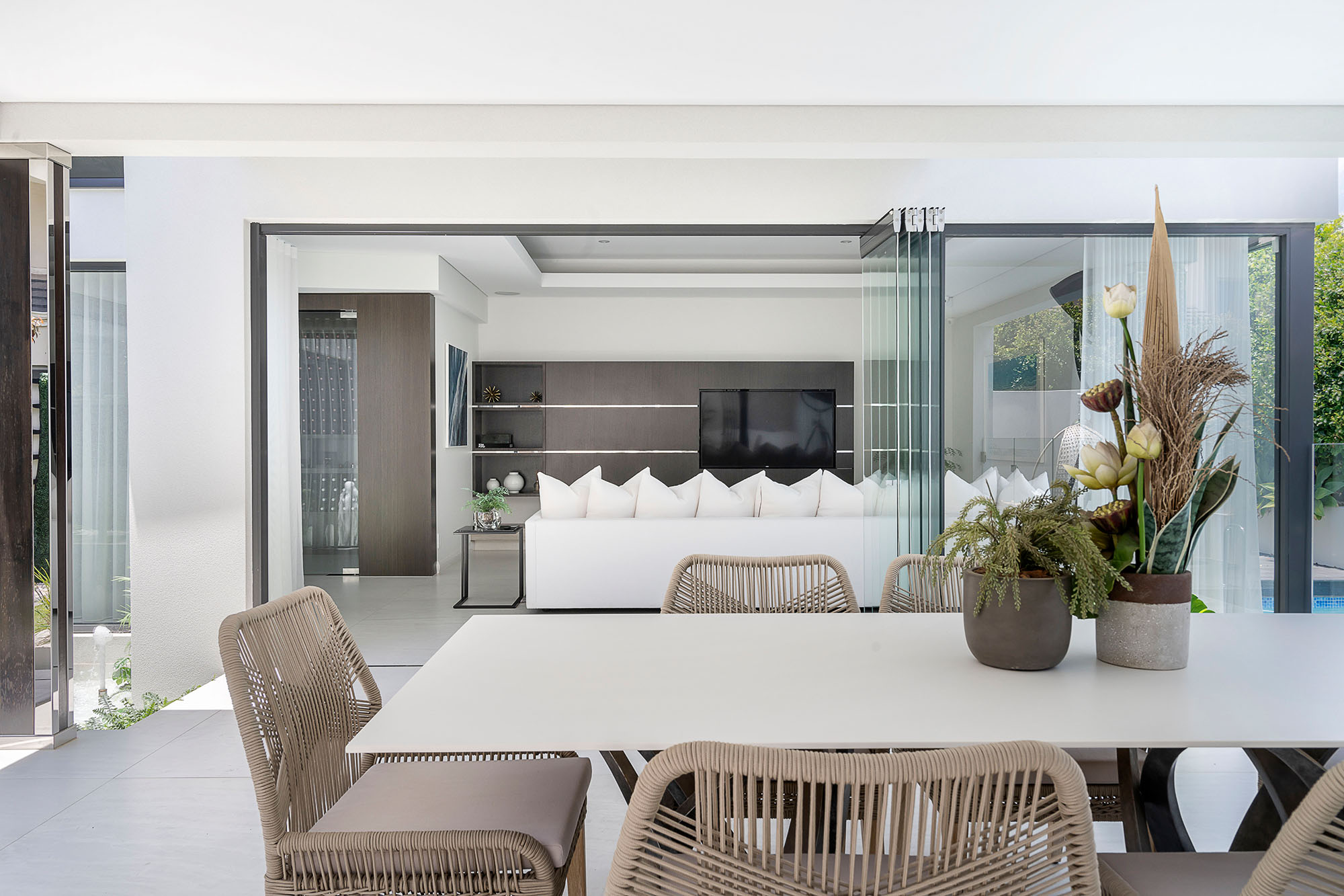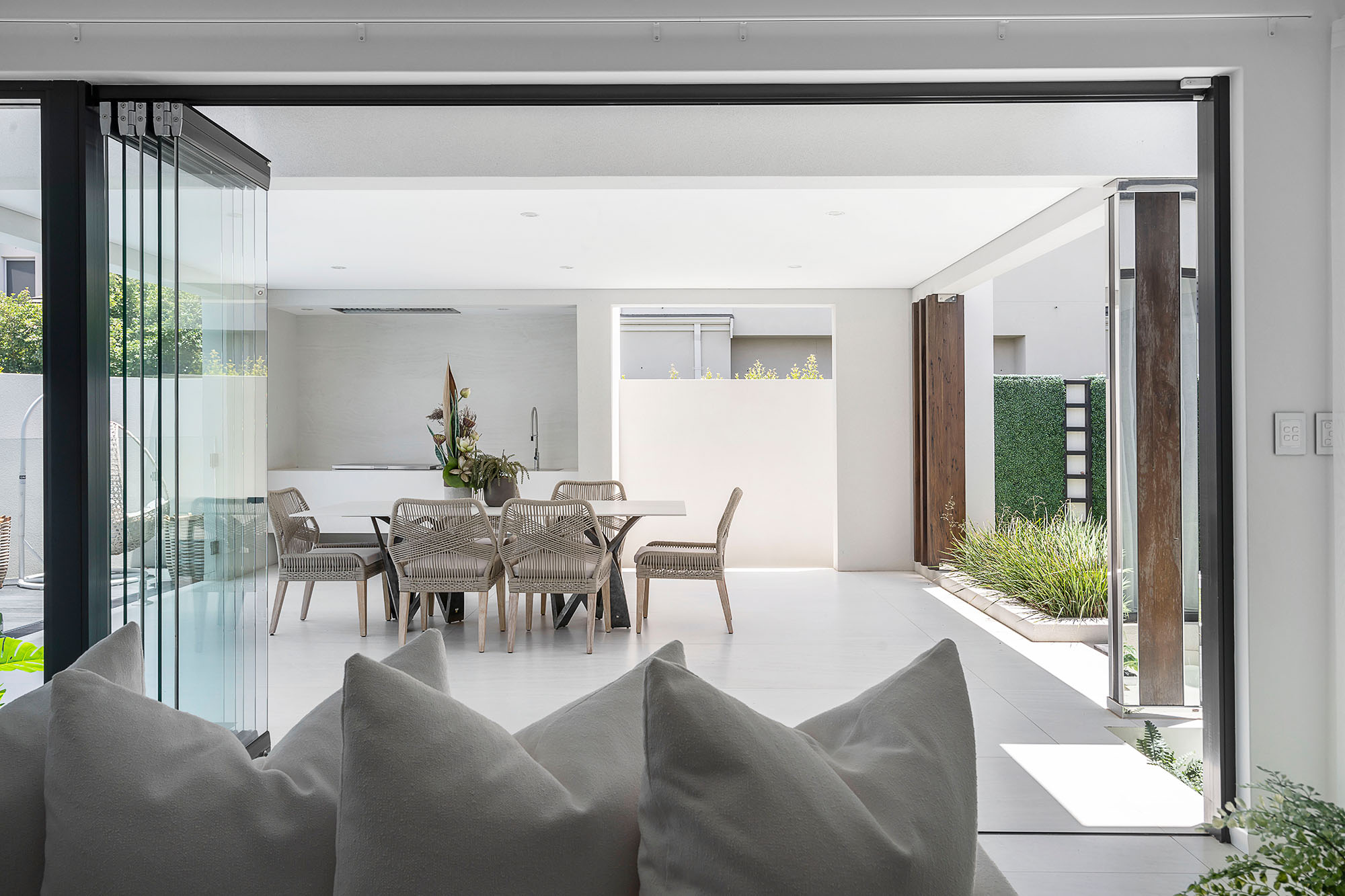 The outdoor area fuses with the internal living seamlessly thanks to frameless glass bi-fold doors creating the perfect entertaining area.
